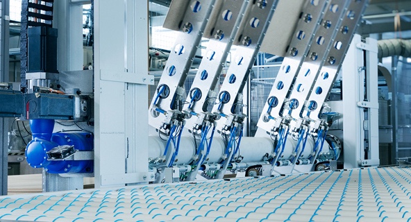Der neue Leichtbau-Werkstoff Lisocore® der Lightweight Solutions GmbH bietet bis zu 70 Prozent Gewichtsersparnis gegenüber herkömmlichen Holzverbundplatten. Hergestellt wird er in einer eigens dafür entwickelten Produktionslinie. Die Anforderungen an die automatisierte Handlingtechnik der Anlage waren hoch. Der umfangreiche Engineering Support und die leistungsgerecht ausgelegten Servogetriebe von WITTENSTEIN gewährleisten höchste Flexibilität und Verfügbarkeit bei der Zuführung von Kernelementen und Deckschichtplatten.